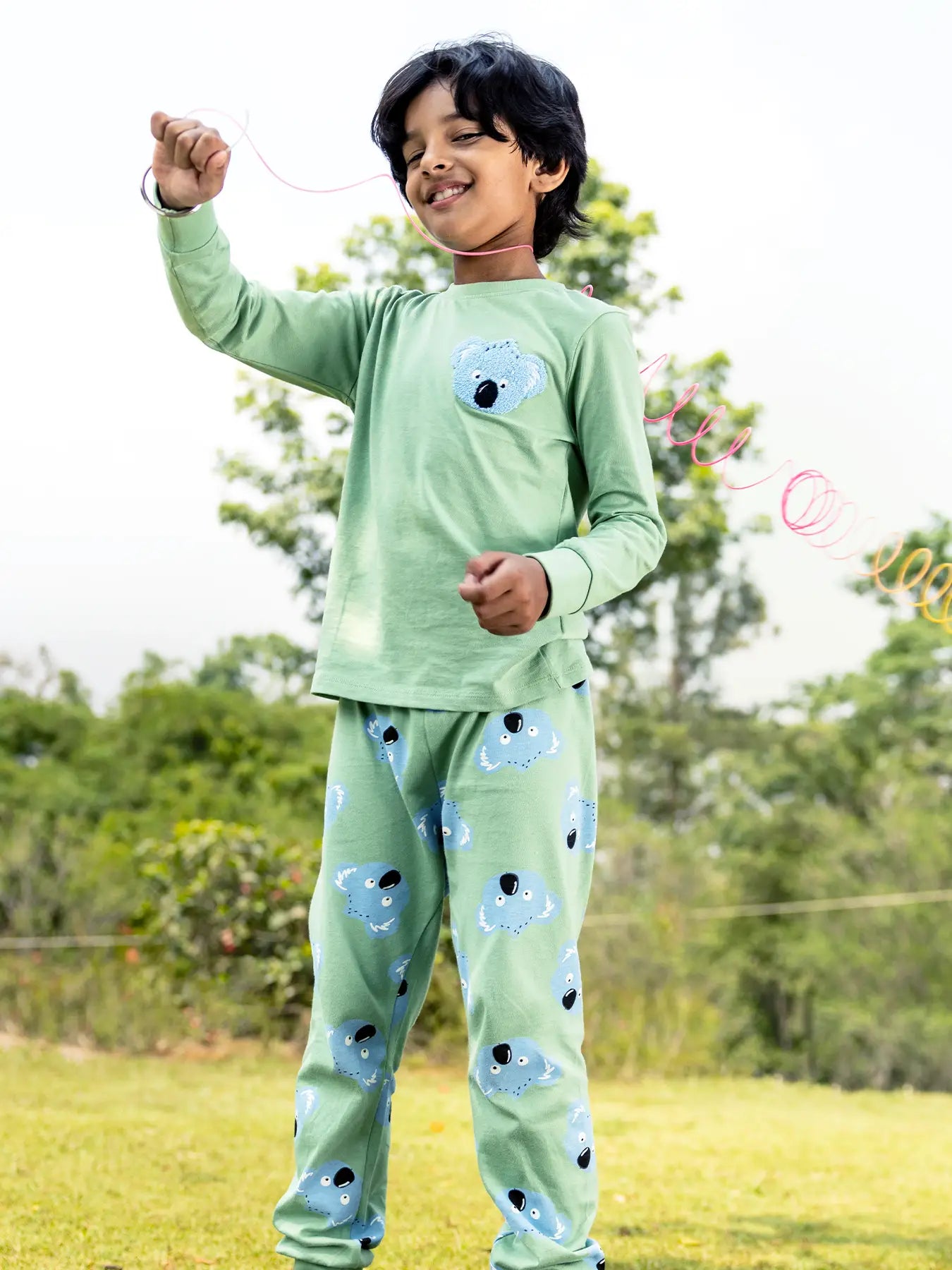 Meet the Cheeky Koala β adorably calm yet full of fun! This set blends soft hues with playful animal prints that charm kids and parents alike. Gentle on skin and perfect for all-day wear, itβs ideal for everything from creative play to cozy snuggles.