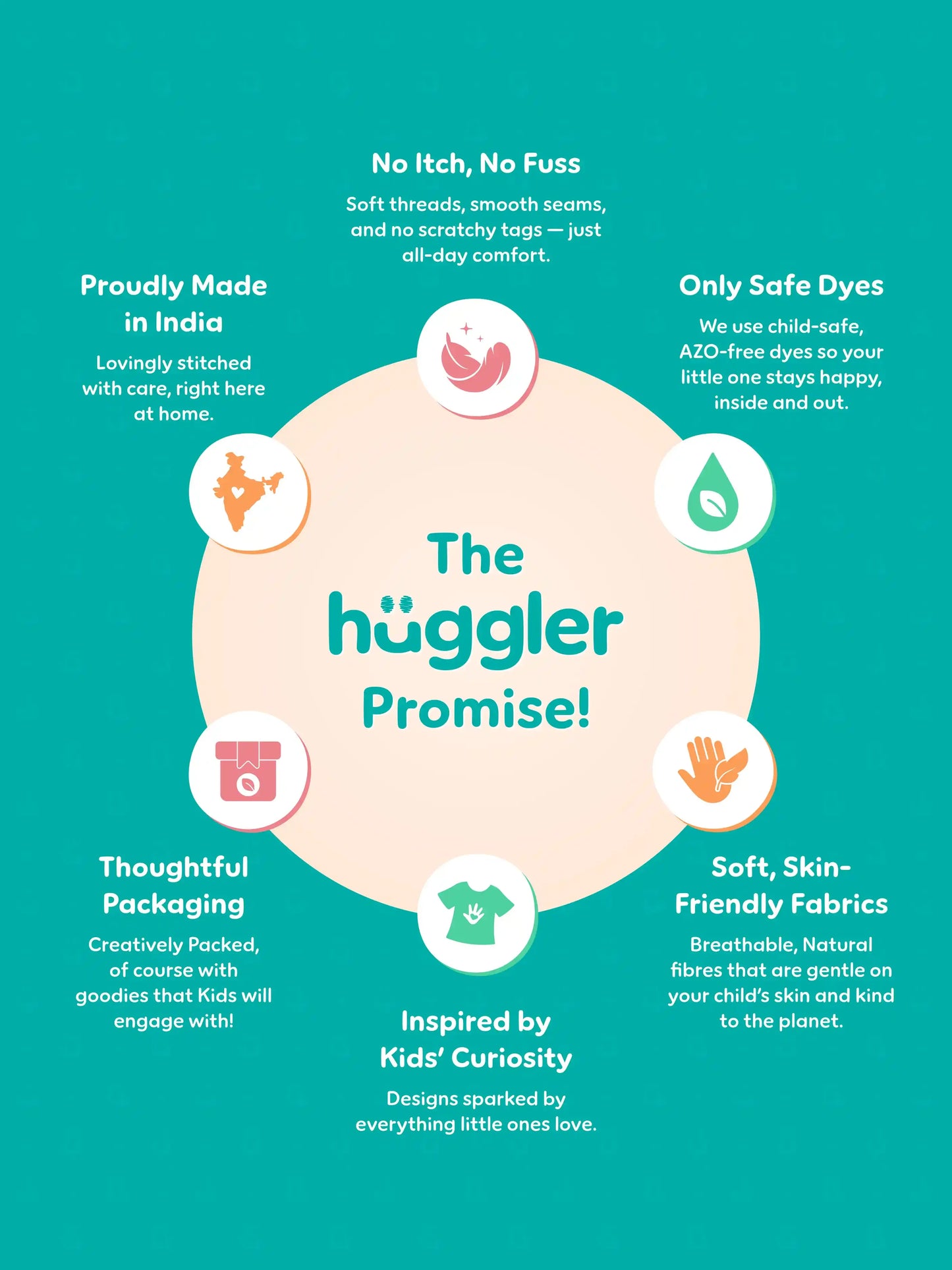 We use Soft, breathable 100% Organic Cotton to ensure comfort and durability for your Child’s sensitive Skin