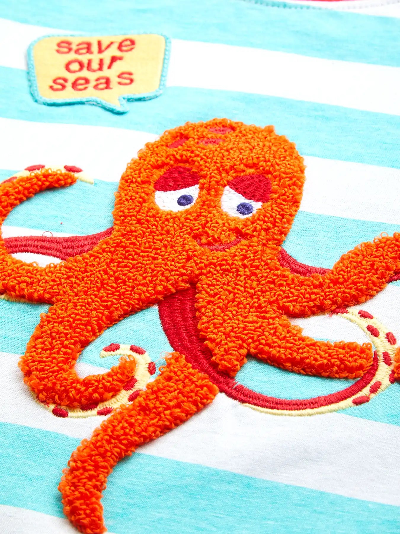 This ocean-inspired set combines playful sea-themed graphics with a thoughtful message. Crafted from lightweight cotton, it is stylish, comfortable, and encourages awareness about protecting nature.