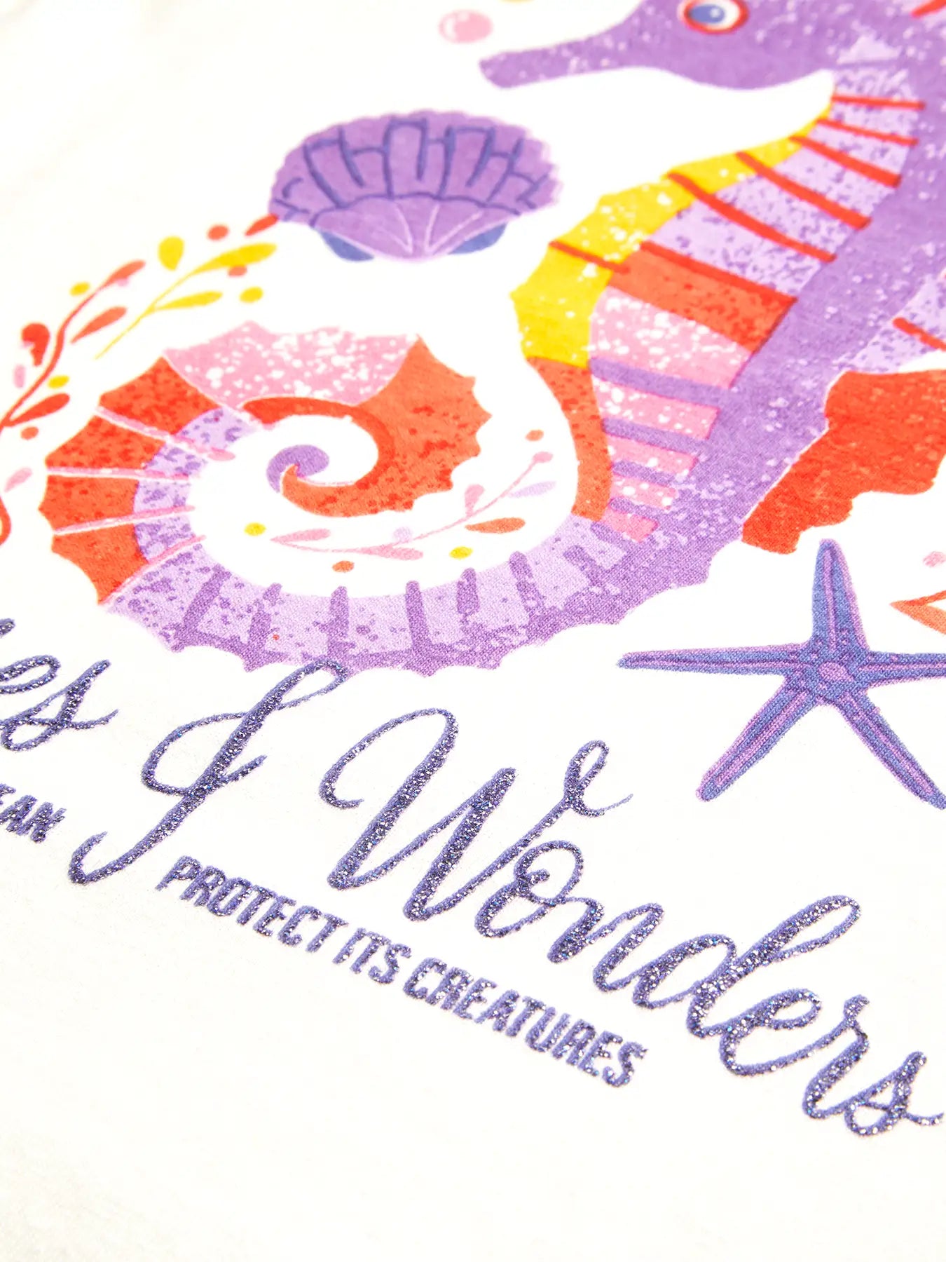 Inspired by the wonders of the sea, this set comes with playful seahorse prints. The breathable cotton fabric makes it ideal for summer adventures.
